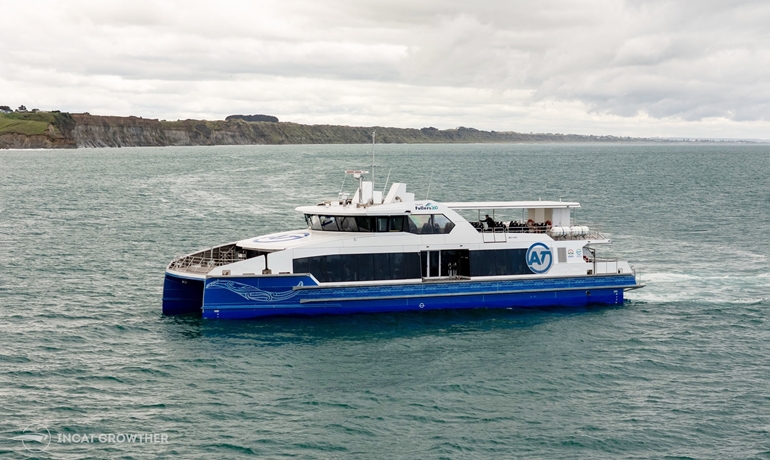 High-speedAuckland city’s first plug-in hybrid electric fast ferry has completed sea trials and will soon enter service on the busy Auckland to Devonport commuter route. The vessel achieved a top speed of 36 knots on all-electric mode, surpassing expectations. Designed by Incat Crowther, built by Q-West Boat Builders with systems integration by Hamilton Jet, the operationally flexible 32-metre vessel is the first in a fleet of two new electric hybrid fast ferries that will be operated by Fullers360 for Auckland Transport.