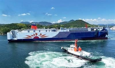 FerryThe naming and launching ceremony was held for the second of two 199.4m long LNG-fuelled ferries being built at the Naikai Zosen shipyard. Named SUNFLOW...