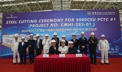Ro-roOn 14 March, a steel cutting ceremony was held in Haimen at the CMI Shipyard for the Grimaldi Group’s first of ten Ammonia Ready 9,000 CEU capacity car c...