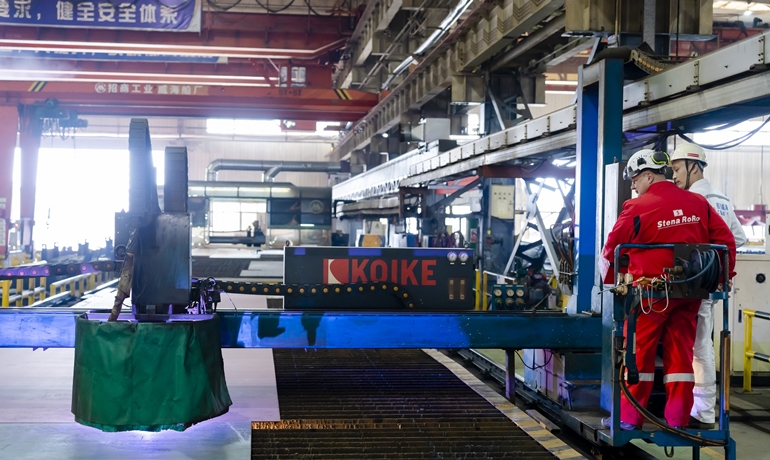 Ro-roStena Line held a steel cutting ceremony for the first of its ‘NewMax’ hybrid ro-ro’s in Weihai, China. The two new hybrid freight ro-ro’s are ordered from Stena RoRo and destined for the Belfast–Heysham route, with the first due to enter service in autumn 2025.