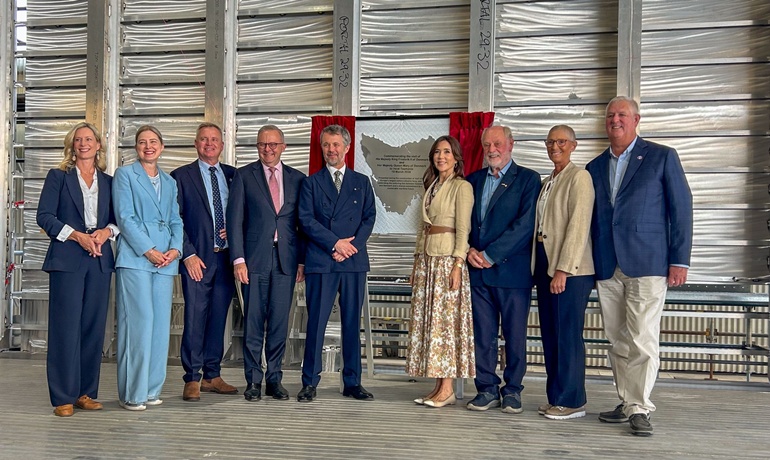 High-speedIncat Tasmania welcomed Their Majesties The King and Queen of Denmark to the Hobart shipyard, where they viewed construction of the world’s most advanced battery-electric ferries. Their Majesties were joined by Prime Minister Anthony Albanese during the official visit, which showcased Incat’s leadership in sustainable shipbuilding and highlighted the construction of three large battery-electric ferries for Danish operator Molslinjen.