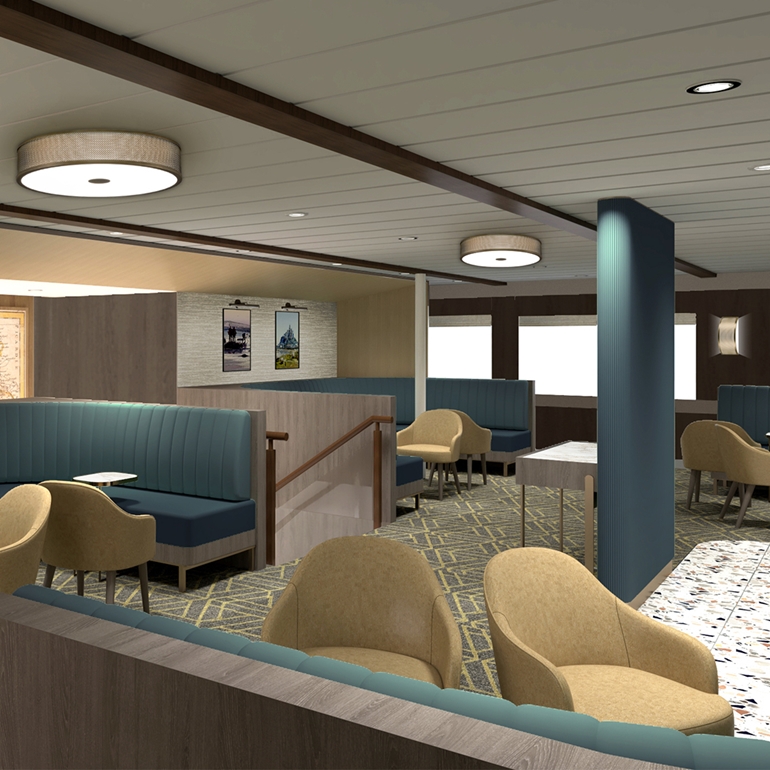 FerryDFDS' two ferries, COTE D'ALBATRE and SEVEN SISTERS, on the Newhaven-Dieppe route, are undergoing refurbishments, and some early renderings have now been released.