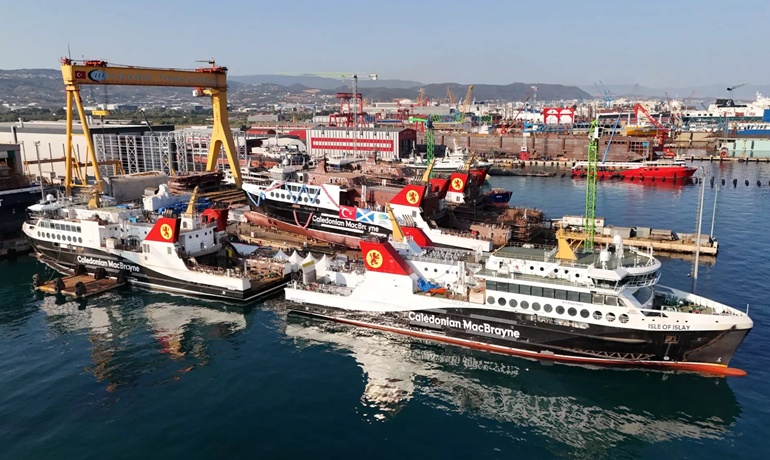 FerryCMAL has formally taken ownership of ISLE OF ISLAY following a handover ceremony at Cemre Shipyard in Yalova, Türkiye, where the vessel was built. ISLE OF ISLAY, the first of four ferries being constructed at the yard, will serve Islay and Jura when she enters service, and will be joined by her sister vessel LOCH INDAAL later this year.