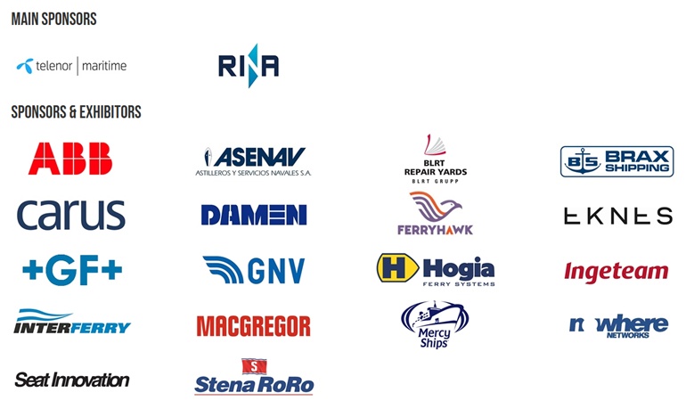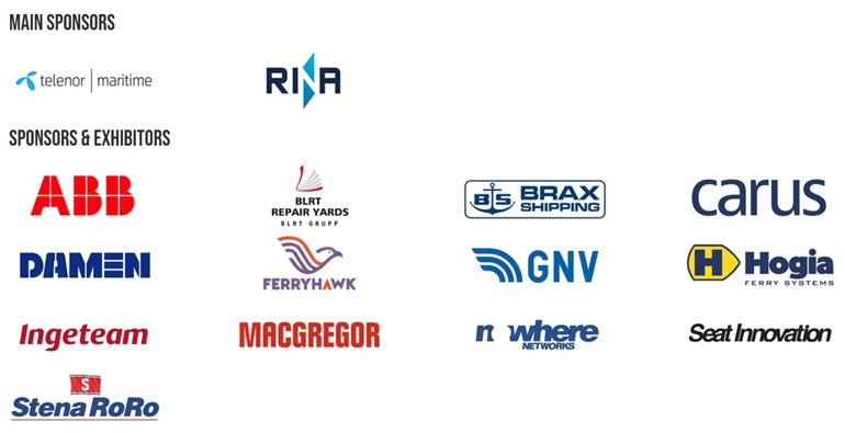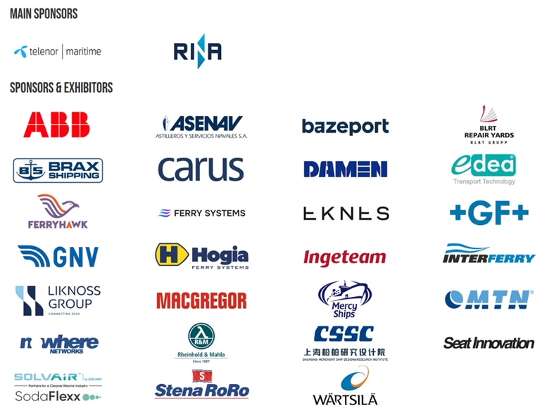 ABB, Accomar Marine Interior, ACT Commodities, Actemium OPS, Adaptive Recognition Nordic, Afai Southern Shipyard, Aferry, Alta Shipping Brokers, Aluflam Marine, Alvina Shipping, Anschütz, Archipelago Philippines Ferries Corp, Aros Marine, Artemis Technologies, A-Ships Management, Assa Abloy Global Solutions, Atlantic Shipping, Attica Group, Auramarine, Austal, B COOL, B9 Energy Storage, Balearia, Barry Rogliano Salles, Bassoe Technology, Beha-Hedo Marine, Berg Propulsion, Beurteaux, BLRT, BorgWarner, Brax Shipping, Brittany Ferries, BRS Shipbrokers, Brunvoll, Bureau Veritas, Canawaima Ferry Service, Canawaima Management Company, Candela Technology, Caronte & Tourist, Carus, Caterpillar Motoren, CCH Design, Cemre Shipyard, China Merchants Heavy Industry (Jiangsu+Shenzhen), China Merchants Industry Holdings, China Merchants Jinling Shipyard (Nanjing+Weihai), Cita Marine Furniture, Clarksons, Color Line, Consilium Safety group, Corsica Ferries, Corvus Energy, Cotenaval, CSSC Cruise Technology Development, Damen Group, Danish Export Association, Deltamarin, DeRossi Marine, Destination Gotland, DFDS, Direct Ferries, DMS, DNV, Droplet Technologies, dSign, Echandia Marine, Eckerö Group, E-Dea, EHRENBERG SØRENSEN Kommunikation, Eknes, Ekornes, Eltorque, Enrico Scolaro Shipbrokers, EST-Floattech, Evac, Expian, Ferrando & Massone Shipbrokers, FerryGateway Association, Ferryhawk, Filmbankmedia, Fire Island Ferries, Fjord Line, Flexipass, Foreship, Freeport of Riga Authority, Freudenberg e-Power System, FRS, FSG Design, FSG Shipyard, Fugro Norway, GCE Blue maritime Cluster, Georg Fischer, Glamox, Grandi Navi Veloci, Grendi Trasporti Marittimi, GNW Capital, Go Nordic Cruiseline, Godby Shipping, Gotland Tech Development, Gotlandsbolaget, Grifone Shipbrokers, GSI Marine, Guangzhou Shipyard International, Hans Buch, Harmony Marine Solutions, Helsinki Shipyard / DNY Finland, Herculan, Hestra Inredningar, Hogia Ferry Systems, Hogia Terminal Systems, Houlder, Huanan Building Materials, Hydro Extrusions, Incat Crowther, Incat Tasmania, Ingeteam, Interferry, International Maritime Services, Isle of Man Steam Packet Company, Jets Vacuum, KAM SG Pte. Ltd, KfW IPEX-Bank, Knud E. Hansen, Kockum Sonics, Kongsberg Maritime, KROHNE, La Méridionale, Liferaft Systems Australia, Lloyd's Register EMEA, LMG Marin France, Loipart, LTH-Baas, Lufthansa Industry Solutions, Maatsuyker, MacGregor, Macholl & Specht, MACNA, Malta Shipbrokers, MAN Energy Solutions, Manta Marine Technologies, MariApps Marine Solutions Europe, Marine Charging Point, Marioff Corporation, MariTeam, Maritime Montering Group, Mases Maritime Service, Mason Shipbrokers, Mercy Ships, Meyer Turku, Mikmek, Mobitech, Moby, MTN Satellite Communications, Nagels Druck, Nanni Industries, Naos Ship & Boat Design, NAPA, naValue, Navitaship, Navitide, Netcompany, NIT Naval Interior Team, Njords Ark, NLC Ferry, Nordic HSC, Nordvik Shipping, Nortal, North Sea Offshore, Norwegian Seafarers' Union, Nowhere Networks, Orbyt Global, Oresund Drydocks, OSK Design, OSM Maritime, PAF, Parimar Brokers, Pharos Data, Port of Turku, Porto Santo Line, Ports of Stockholm, Portsmouth International Port, Protect International, Quantum Marine Stabiilizers, Quvia, R&M Group, Rauma Marine Constructions, Rederi AB Ballerina, Rederi AB Eckerö, Redwise, Remontowa Shipbuilding, RINA, Ripple Operations, RISE Research Institutes of Sweden, Rostock port, Sahal Global Logistics, Salto Systems, Scandlines, ScanMarine, Schottel, Sea Ahead Marine, Seacore Shipbrokers, Seajets, Seat Innovation, Sefine Shipyard, Shanghai Merchant Ship Design & Research Institute (SDARI), Shanghai Waigaoqiao Shipbuilding, Signify Norway, Simsonship Shipbrokers, SMC Design, SodaFlexx International, Solvay, Solve A Mystery, Speedcast, SSY, Star Information Systems, Steerprop, Stena Line, Stena RoRo, Surikat, Tallink, Tallink Silja, Team Electric Group, Telenor Maritime, Tesvolt Ocean, The Norwegian Ship Design Company, Thunship, TLS - Boca Systems, Toremar spa, Trelleborg, Trident BMC, TS Laevad, TT-Line, Ulmatec Thermal Solutions, Unitramp, Valmet, Verband Deutscher Reeder, Vestnes Ocean, Vetrotech Saint Gobain, Viking Life Saving Equipment, Viking Line, Voith, Wabtec, Wasaline, Weasel Software Ltd, Western Baltija Shipbuilding, West Mekan Produksjon, WE Tech Solutions, Wight Shipyard Company, Wightlink, Wireless Maritime Services, Wyker Dampfschiffs-Reederei Föhr-Amrum, Wärtsilä, Yantai CIMC Raffles Offshore, Zeppelin Power Systems, Zinus