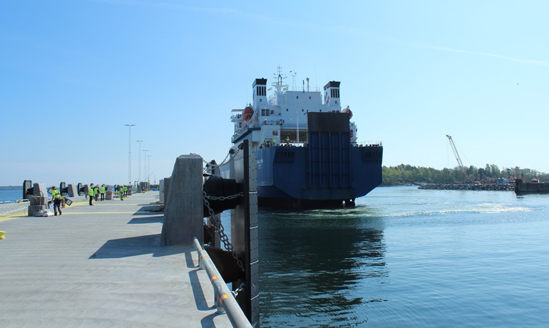 The 245-metre-long pier is now since Monday open and ready to handle vessels at the Port of Kapellskär. The port now has two new modern quay-berths. Before the end of 2016 the entire port is expected to be finished after three years of construction.