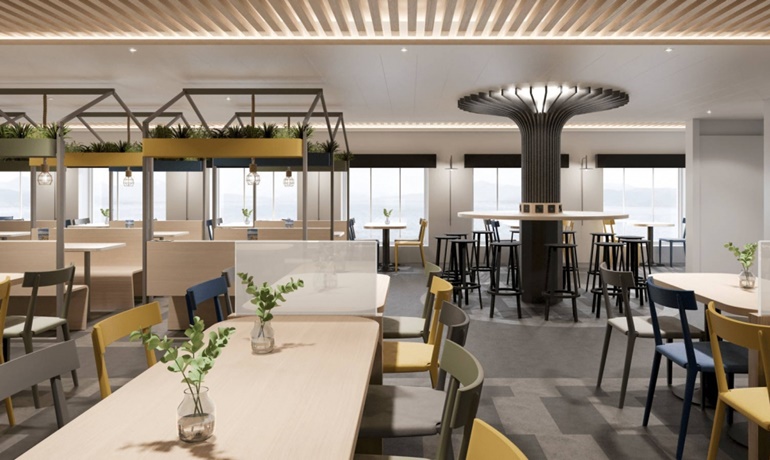 The interior designs of the new ferry, which will operate between Vaasa in Finland and Umeå in Sweden, are being finalized. Kudos has produced the interior design plan for Wasaline’s new ship. They have designed all public areas of the ferry.