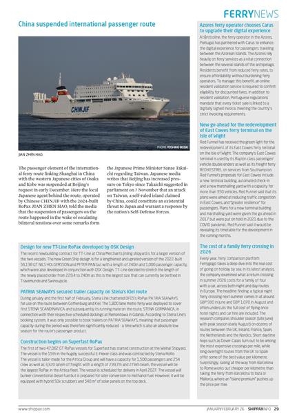 Each issue covers at least one topical theme in full, complete with diagrams, quotes and commentaries from the experts, our totally unique monthly traffic statistics found nowhere else from all the major European ferry operators, fleet change reports, order books, current projects and much more.
