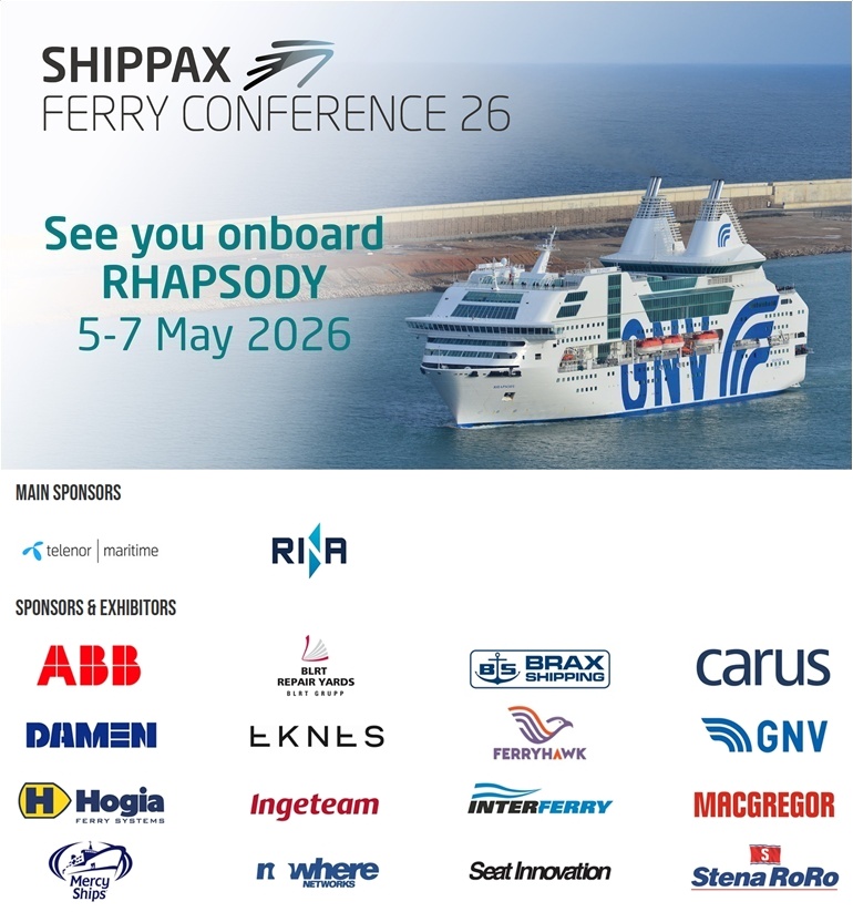 Join us and meet approximately 500 delegates from over 240 companies in the ferry industry on board GNV’s RHAPSODY, 5–7 May 2026, sailing between Genoa - Olbia and return.